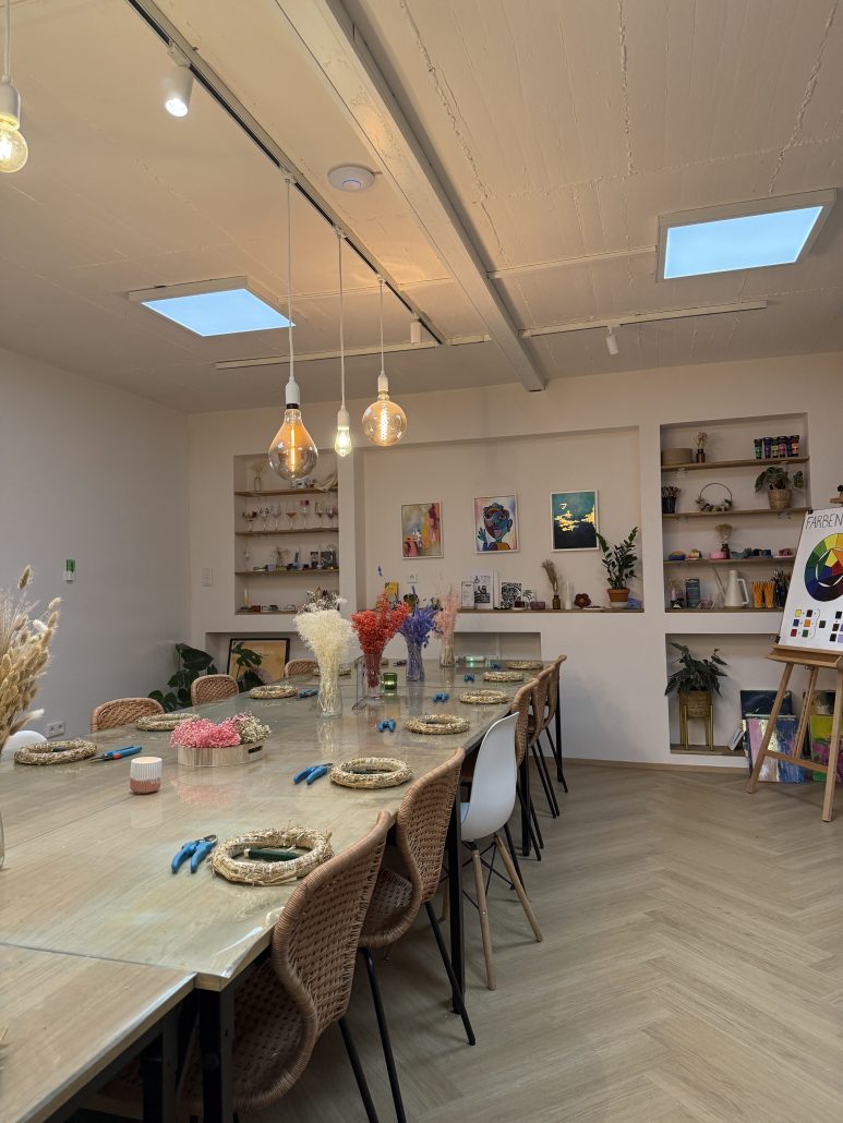 Du willst Ostern kreativ werden? Im The Craft Studio bindest du am Ostersonntag deinen ganz persönlichen Frühlingskranz. Perfekt als Deko oder Geschenk zu Ostern in Düsseldorf. Unter professioneller Anleitung gestaltest du aus Trockenblumen, Naturmaterialien und frischem Grün dein individuelles Unikat. Alle Materialien sind inklusive, Vorkenntnisse brauchst du keine. Egal ob Anfänger oder DIY-Profi. In gemütlicher Atelier-Atmosphäre entsteht so dein ganz eigener Frühlingsbote, den du direkt mit nach Hause nimmst. Ein wunderschönes Oster-Event in Düsseldorf für alle, die Blumen lieben.
